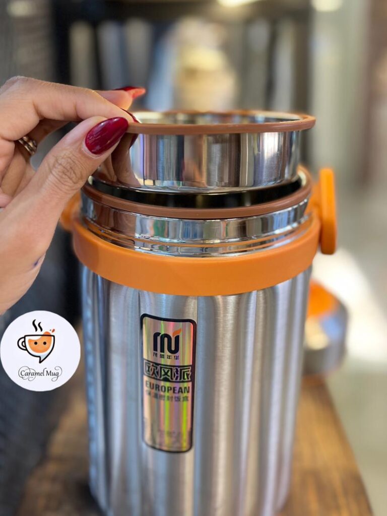 دارای دو عدد ظرف استیل واشردار مجزا داخل فلاسک به منظور تفکیک مواد غذایی از هم