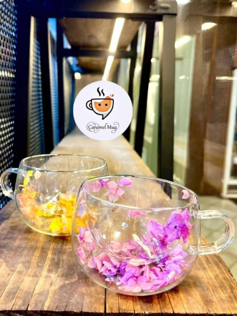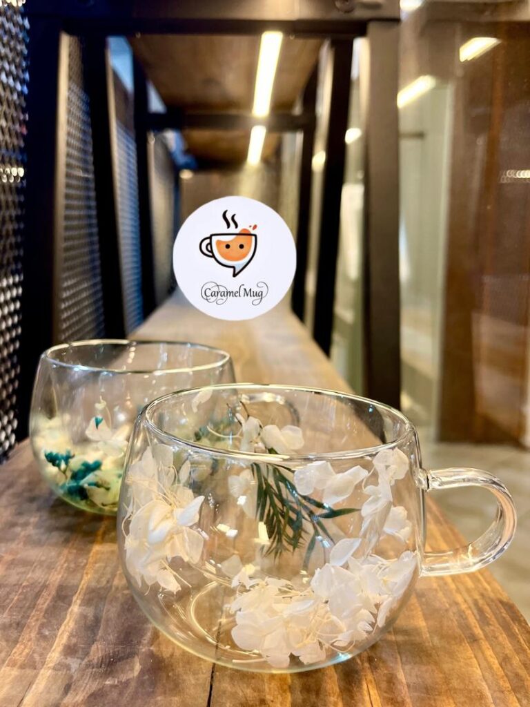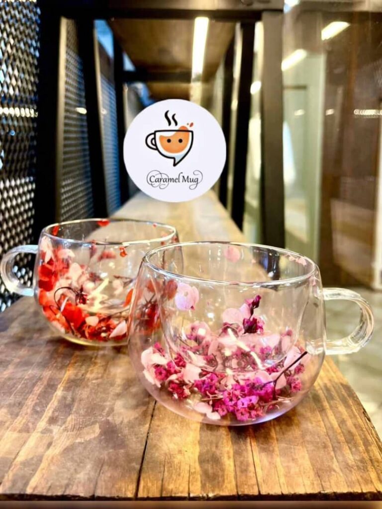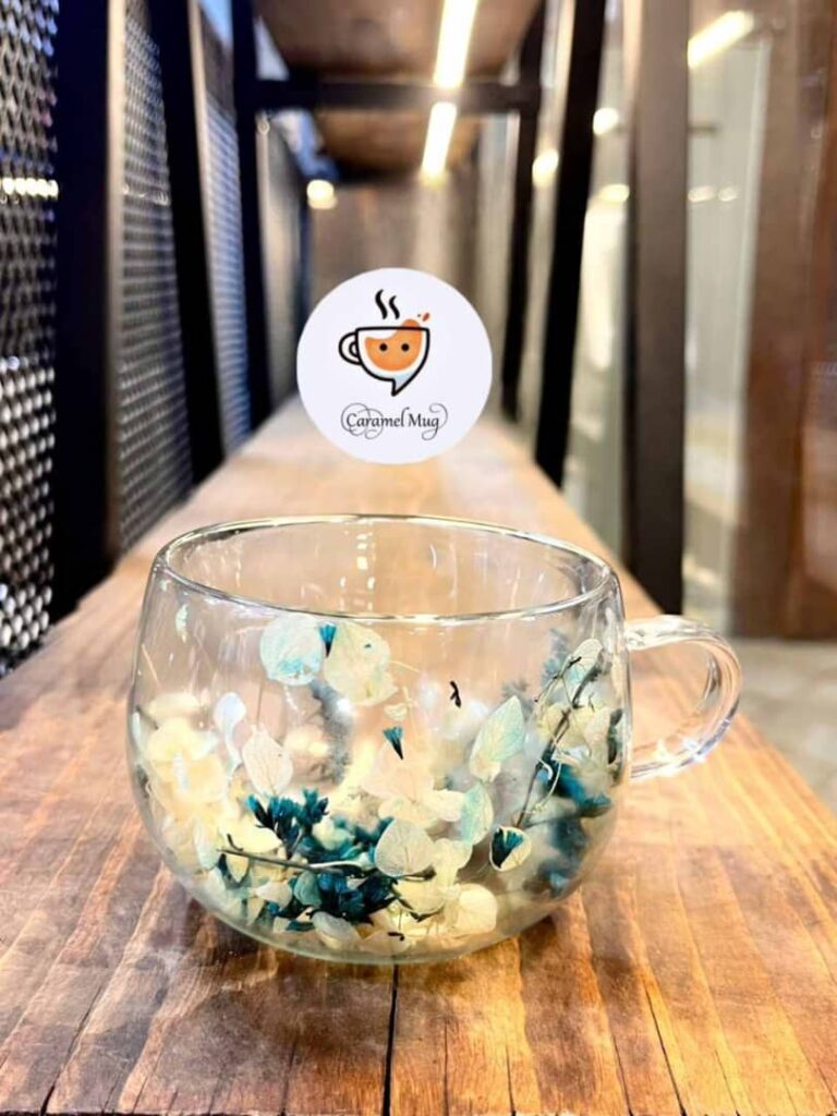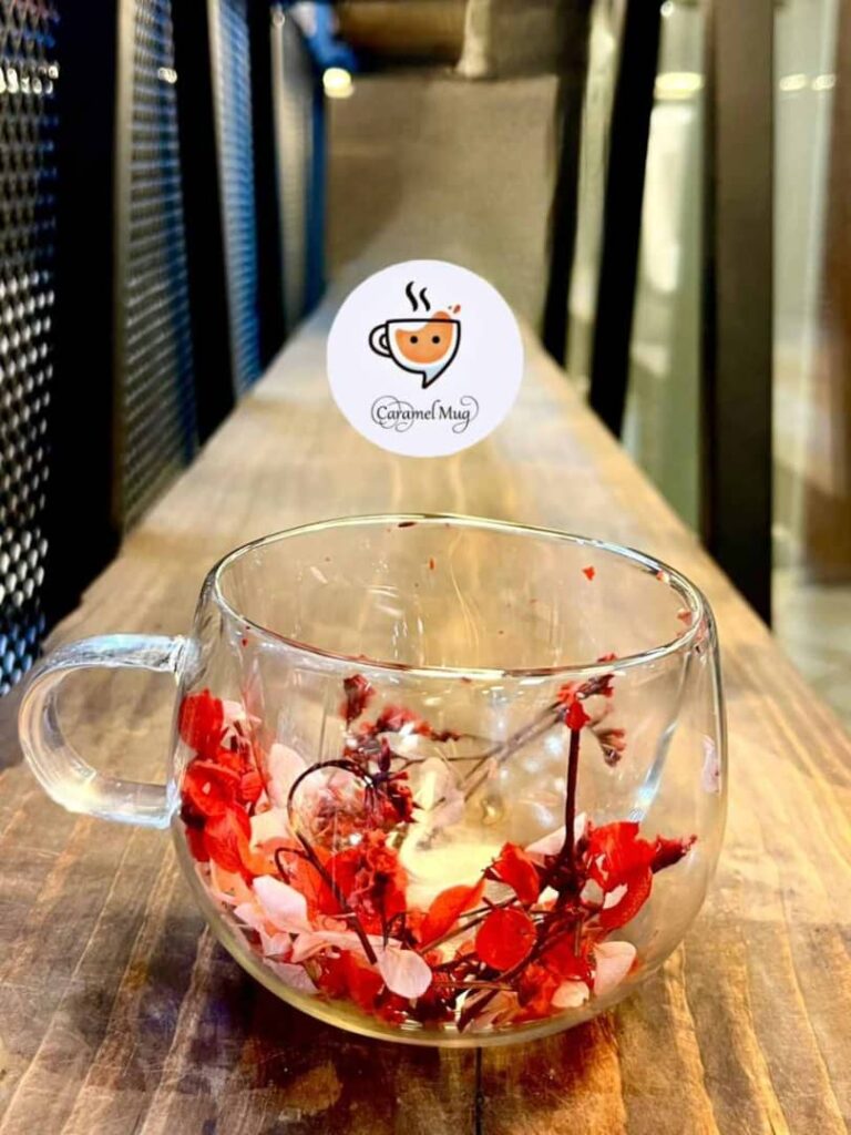 فنجان پیرکس دوجداره گل دار طرح گرد