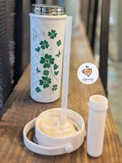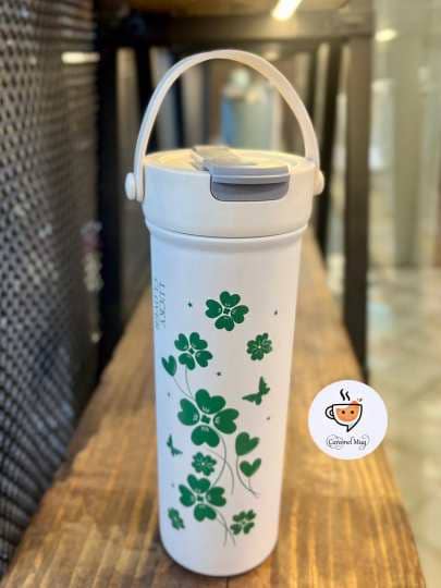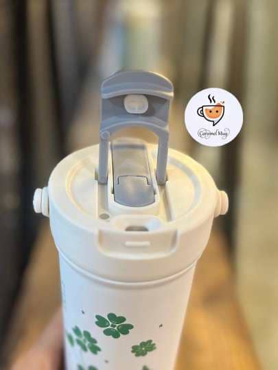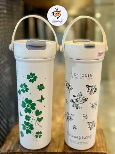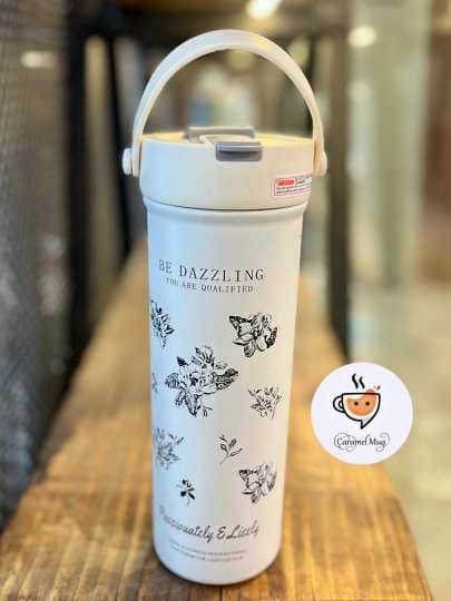 ⁨قمقمه گلدار استیل دو حالته ( آسان نوش و نی دار) 🥤